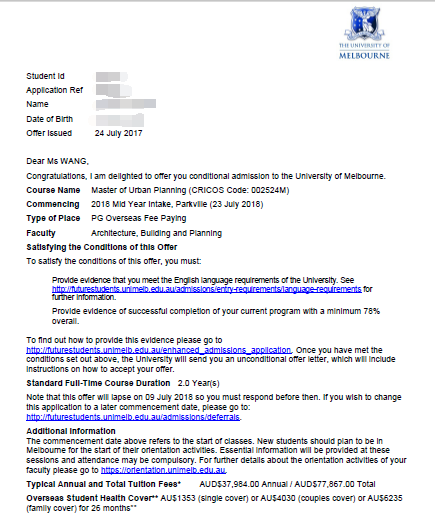 录取院校:墨尔本大学