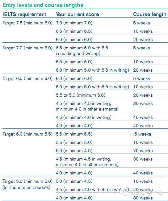 Course length就是根据你现在的雅思成绩和正课要求你达到的雅思水准给你配置的语言课程长度