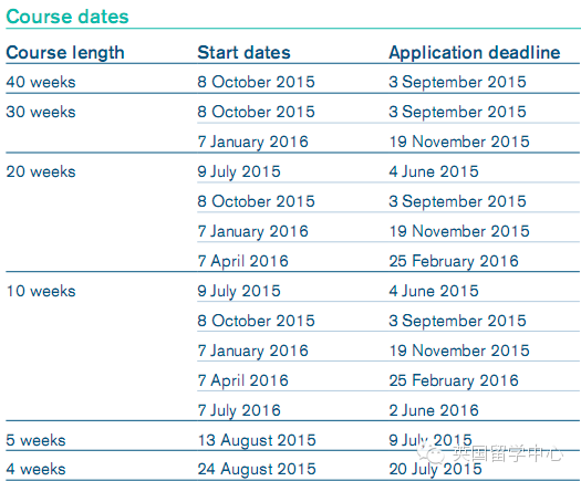 下图为相应周数的语言课程对应的开课日期和申请截止日期。。。