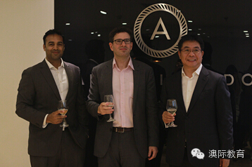 三人合影(从左至右依次为首席运营官Raj Patil、首席执行官Jon Frank、澳际教育集团总裁李平先生)