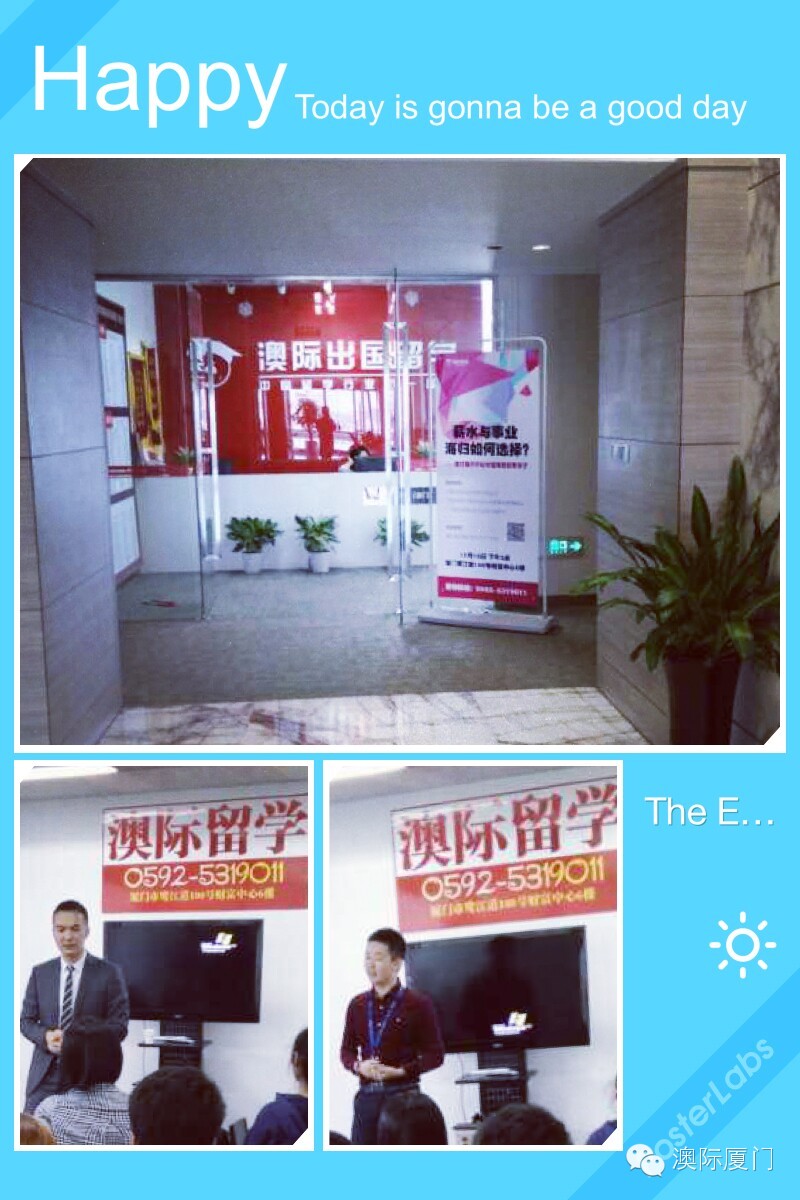 上周末,澳际厦门为大家邀请来了渣打银行行长Daniel 为大家讲解职场上那些你憧憬及不了解的事儿。是不是被年轻的行长给帅到?是不是也突然非常向外海外的生活,想体验下海归回国就业遇到的稀奇古怪的事,奇葩的不能再奇葩的事比比皆是呢?是不是也突然很想踏进外企看看不一样的世界? 记得时刻follow 澳际厦门公众微信喔!时不时会蹦出一个你所感兴趣的活动,时不时也会送送礼品,IPAD什么的算什么。说不定下次就是容易掰弯的IPhone6呢!记得时刻关注噢,错过要再等好几年呢!