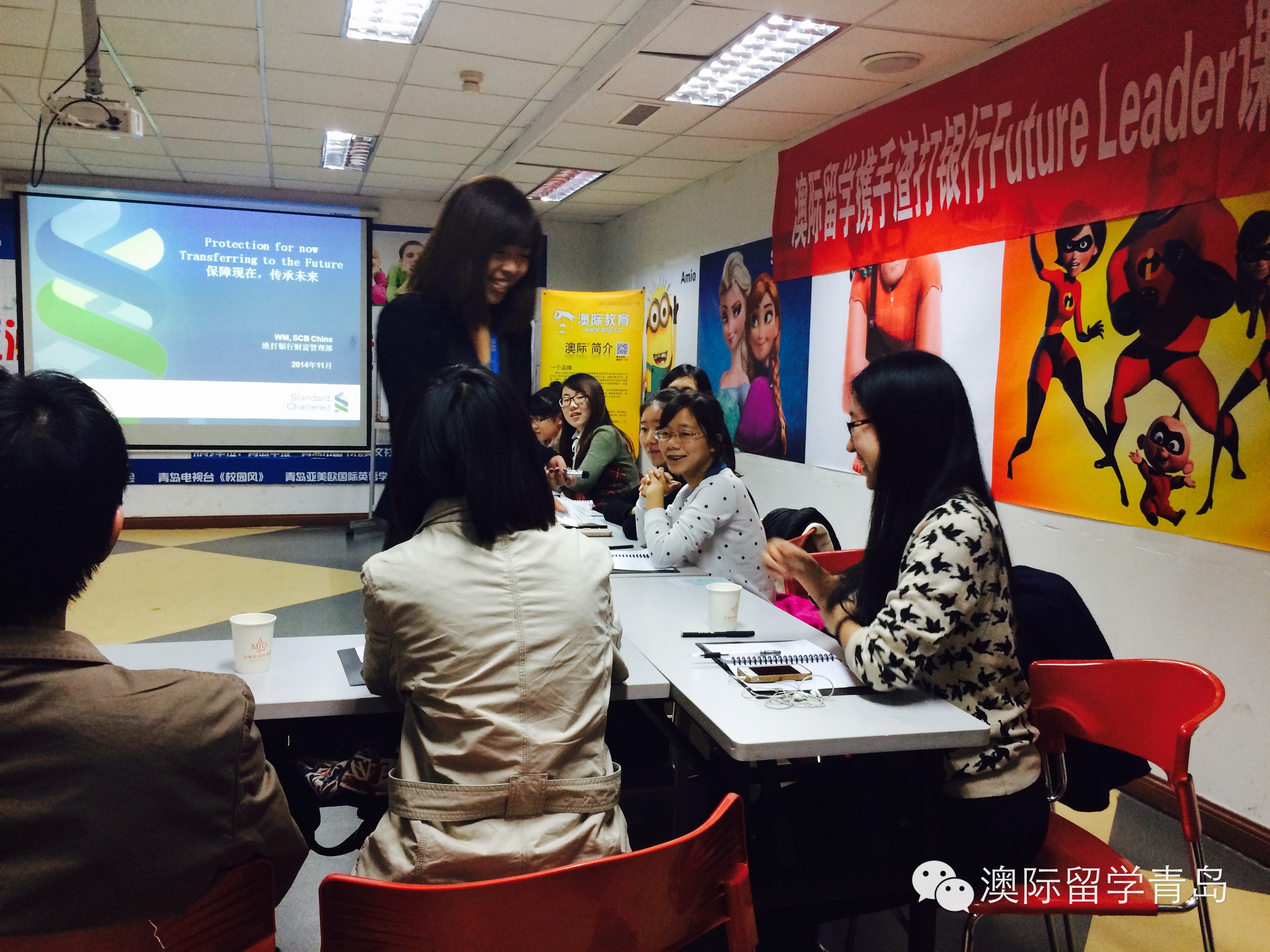 Future Leader成长计划是澳际留学携手渣打银行对金融行业和海外留学感兴趣的客户提供的全方位的增值服务。内容涉及金融知识、团队协作、面试技巧、社交礼仪以及留学准备等方面,除了财商、情商类进阶课程,还有海外实景模拟课堂,资深外教互动情景式教学,把海外学校的课堂搬到你的面前,体验真正的“微留学”,过足“洋人”瘾。