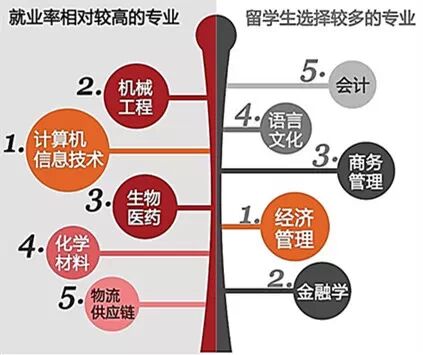 留学生中读商科的最多,文科其次,理工科最少,在就业机会上则秩序相反